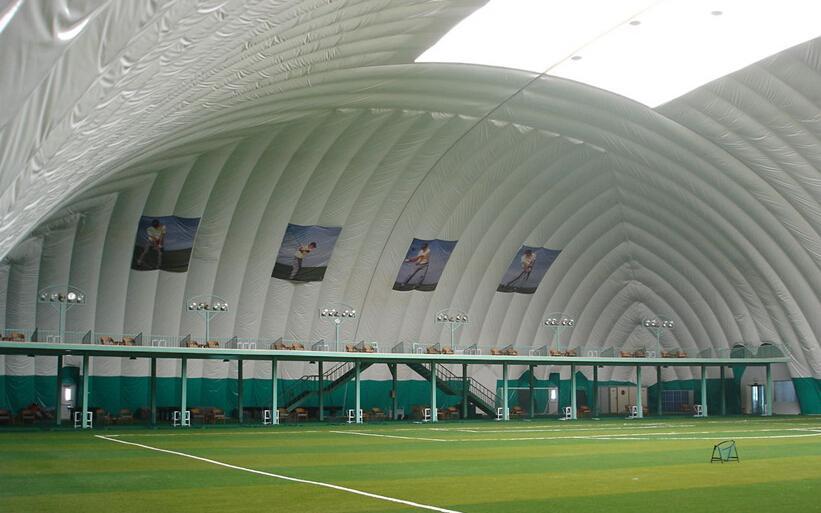 四、表面明亮,表面光洁、美观大方,具自清洁作用,防水防潮功能好,不降雪。在东北地区有一个特别好的证明,北方的雪更厚的过程中可以达到小腿肚的部位,冬季棚表面可能会导致明显的降雪,它是否会压垮?不容易的。一毫米材料的充气膜,可以承受一辆波音747的净重。其次,当膜上边有充足厚的降雪,调高房间内运动场馆的环境温度,根据膜材料非常好的导热性,棚上的降雪会全自动溶化,滑掉到两侧。