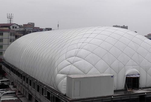 彩掌柜 空气膜建筑是一个大跨度的轻型建筑。由于膜材料重量轻,每平方米的重量小于3公斤。气膜内梁、柱无需气压支撑,可实现100米以上的大跨度净空,跨度可达150米,传统建筑结构无法实现。即使将楼层添加到屋顶也不会增加原始建筑的重量。扩大了展览馆、体育场馆等建筑的建设范围,有效利用了原有建筑面积。